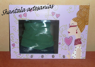 a perchita and a poster with the name, the little card, you do not see much because I did not think to photograph one, is made with EVA, as a bib, I made a small float at the edges and decorate with a satin bow tie. E placard has the same flower box, and I made him a fairy hanger with cold porcelain.